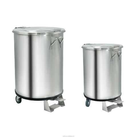Cubo de basura usado para uso comercial, cubo de basura de 100L con Pedal para exteriores, cubierta rodante de acero inoxidable, cartón de plata sostenible, 100 Uds.